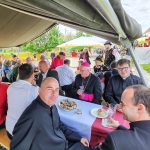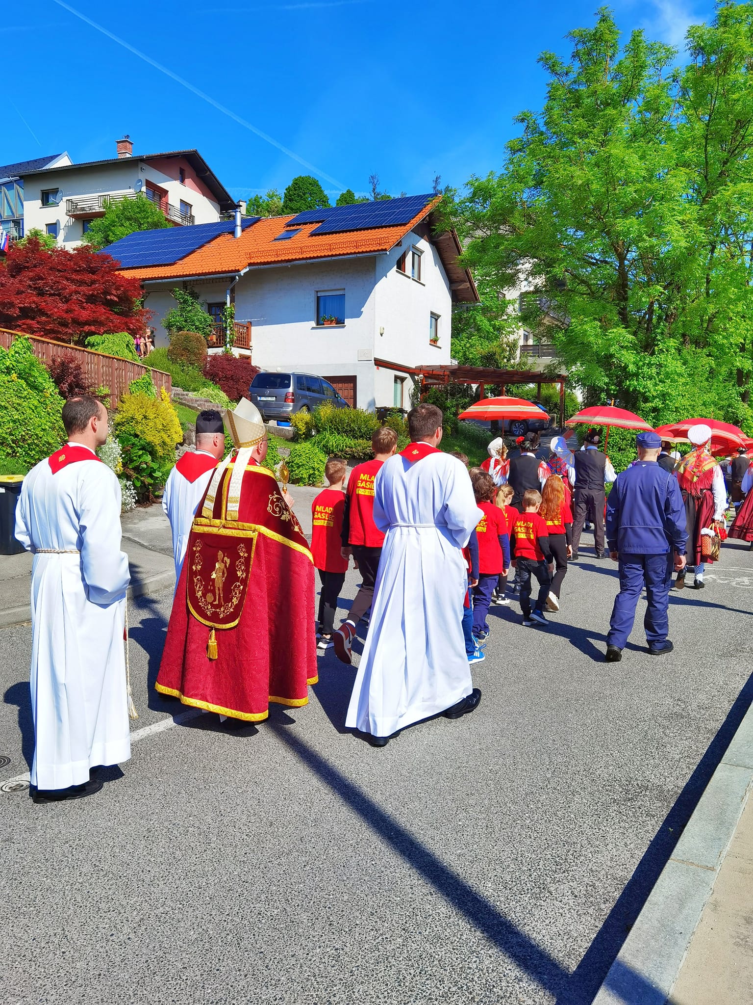Po maši je povorka z narodnimi nošami, Mengeška godba, gasilci ter nadškofom na kočiji Kmetija Mušič krenila nazaj pred gasilski dom Prostovoljno gasilsko društvo Trzin, kjer se je pričela gasilska veselica. To je bilo lepo praznovanje!