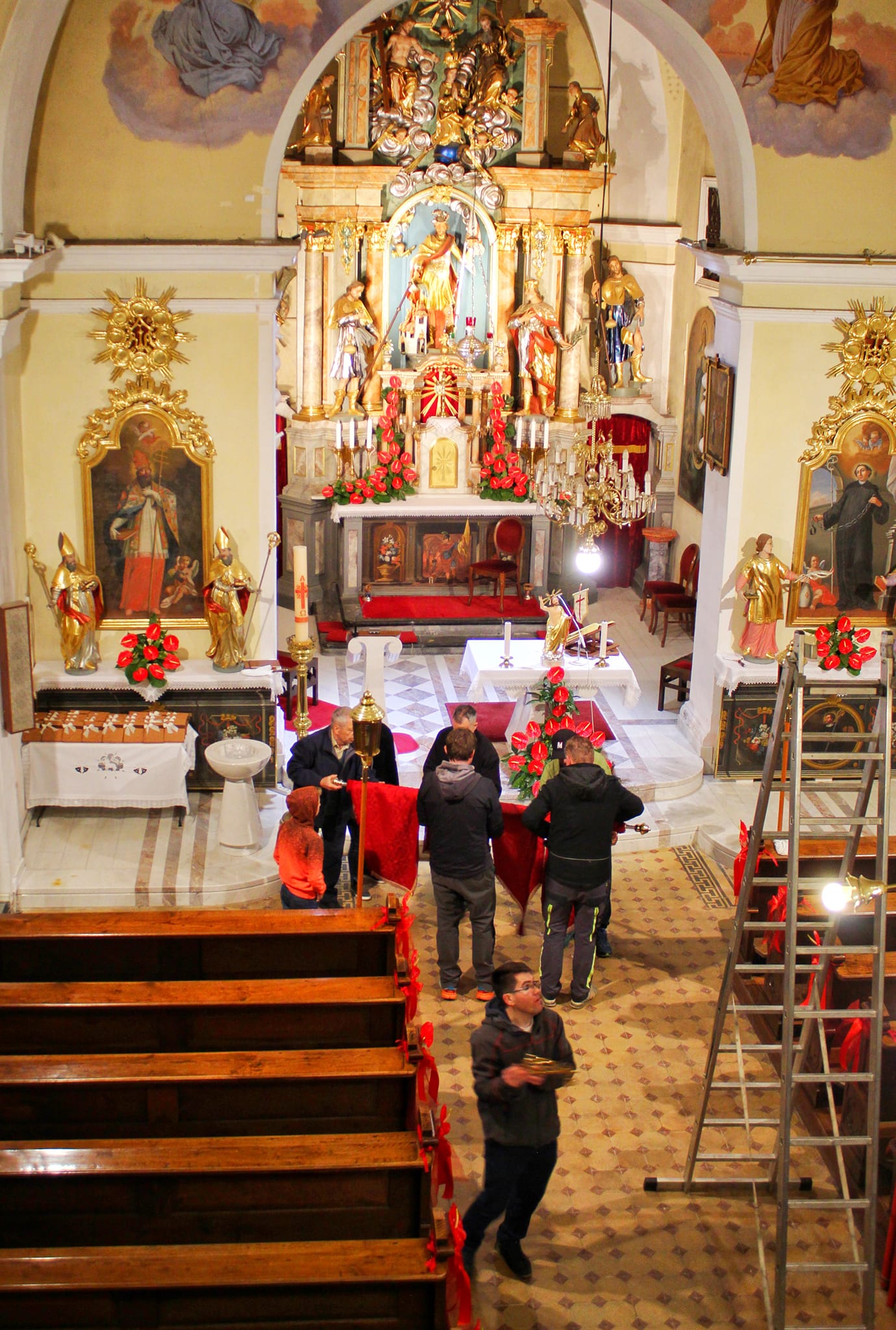Še zadnje priprave pred jutrišnjo slovesnosjo sv. birme – krašenje cerkve ⛪, postavljanje mlajev (dva za slovesnost sv birme, eden za 5️⃣0️⃣ let naše župnije). Zvečer po devetdnevnici še generalka, da bo vse potekalo po dogovorjenem protokolu.