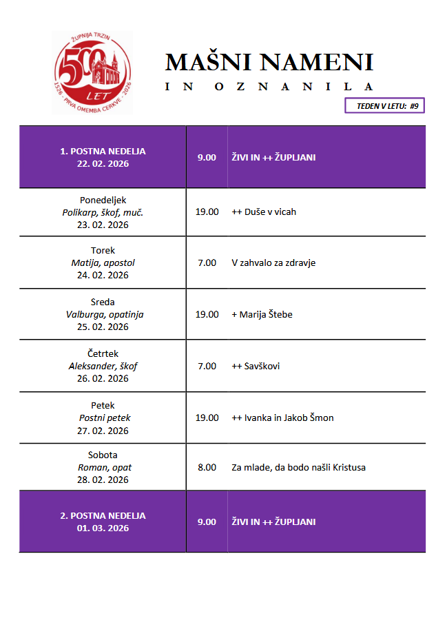 Vabljeni, da spremljate tudi redna aktualna oznanila.